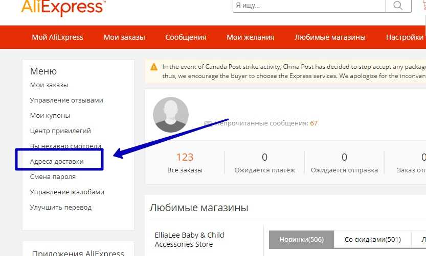 В открывшемся окне нужно перейти в строку «Адреса доставки». В ранее указанном адресе необходимо поменять строки с телефоном.