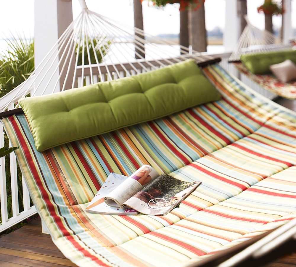 Подвесной гамак является самой настоящей классикой. Такое ложе крепят на две опоры. На даче такими опорами обычно служат деревья, но если подходящих нет, то можно использовать предварительно установленные и надежно забетонированные столбы. В квартирах такой тип гамака крепят к потолку или стенам.