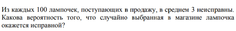 лампочек 3 неисправны, найдите вероятность купить неисправную». Подходящие