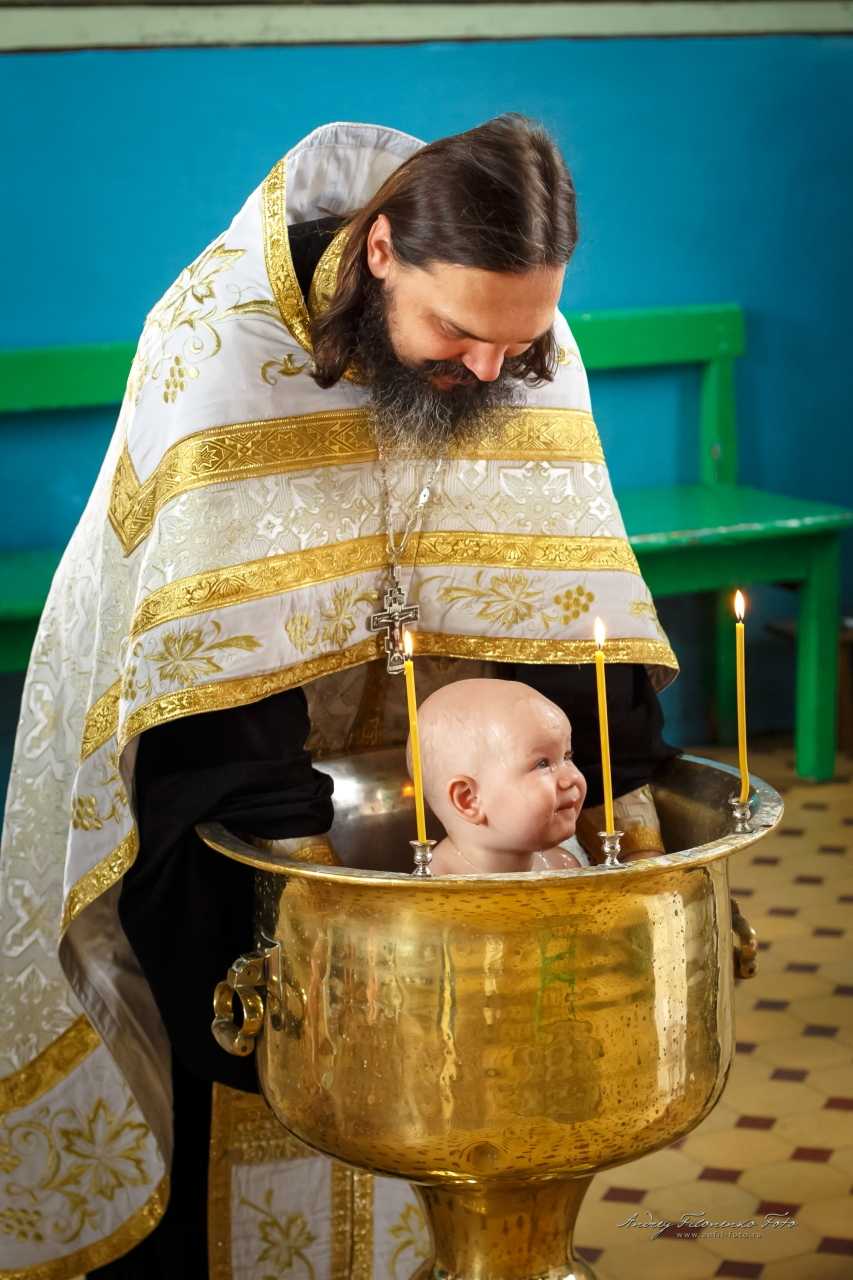 В одних церквях детей окунают в купель полностью. Чем младше ребенок, тем легче он переносит эту процедуру, так как еще помнятся рефлексы.