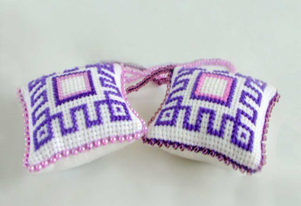 Этот вариант оберега легко изготовить своими руками. Понадобится небольшой кусочек натуральной ткани. Из нее шьют маленький мешочек, наполняют его целебными травами, завязывают красной ленточкой и вешают у входа.