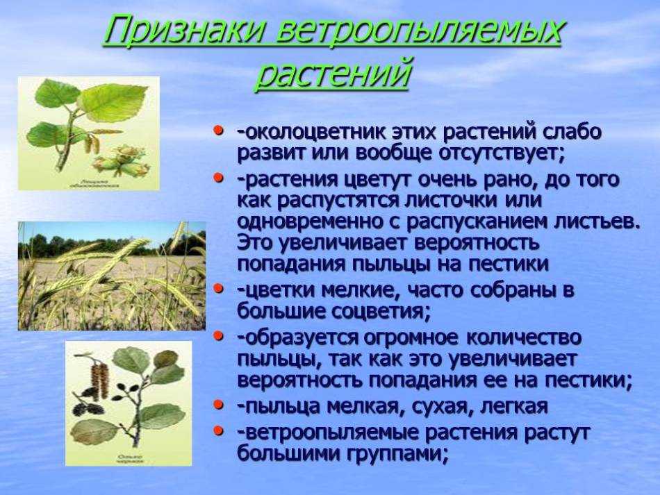 - Еще одно приспособление – пыльцевые зерна рассыпаются только при благоприятных погодных условиях: сухой погоде, слабом или среднем ветре утром.