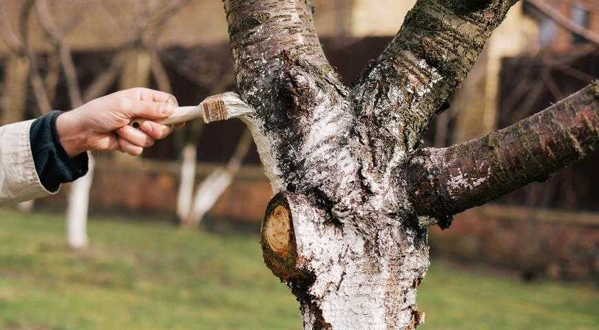 - Осеняя побелка стволов и крупных скелетных веток снижает риск морозобоин.