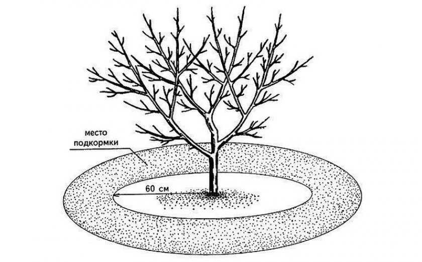 Плодоносящим деревьям вносят влагу по схеме: