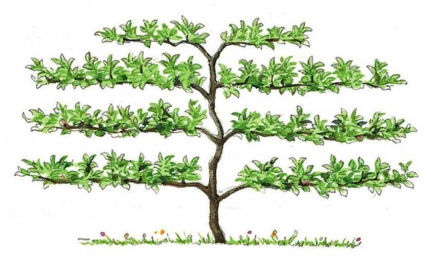 Эта форма напоминает горизонтальный кордон, но предполагает наличие большего количества ярусов, а не только одного. Расстояние между ярусами должно составлять не менее 30 см.