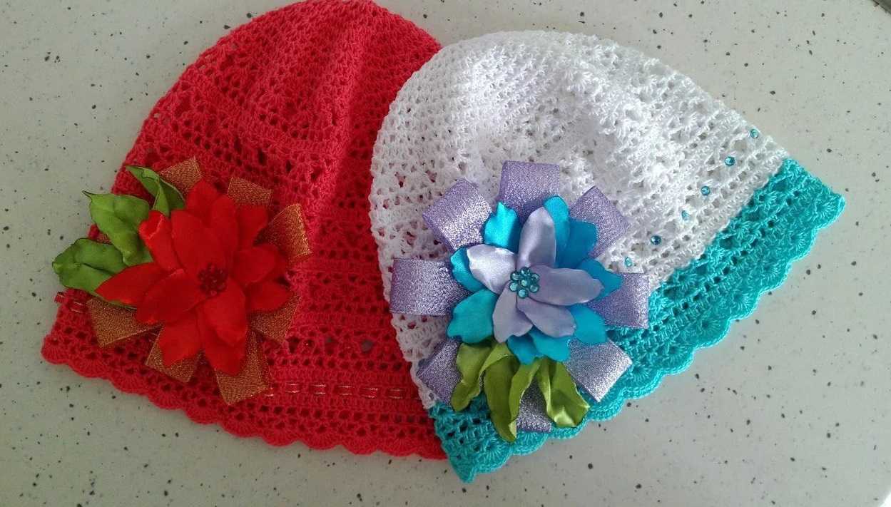 Ажурные шапочки, вязанные крючком, смотрятся красиво и оригинально сами по себе. При желании их можно украсить дополнительно. Есть несколько вариантов декорирования готового изделия: