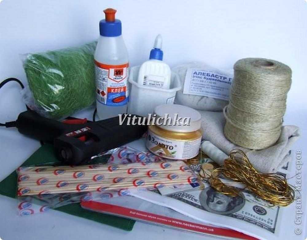 Основу можно сделать любую, использовать кашпо или отлитую форму из гипса, куда предварительно нужно посадить ствол. Основу декорируем по своему усмотрению.