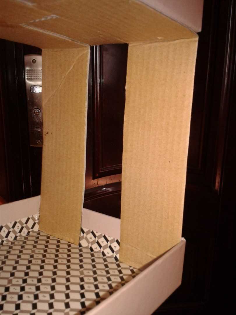- Половина коробки прикладывается к торцу, это и будет одной из ножек будущей постели.