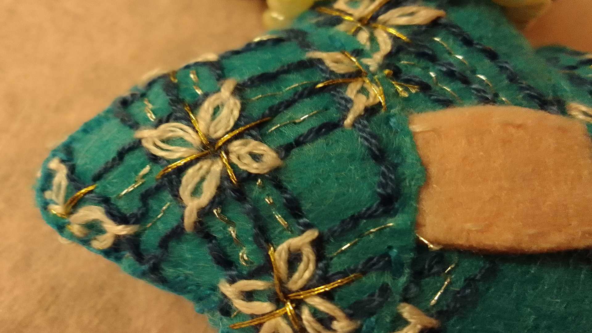 - В самом конце пришиваем или наклеиваем декоративные детальки.