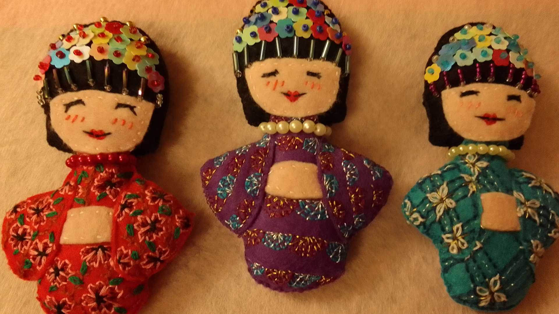 Подойдите к декору изделия основательно, изготовьте игрушку в подарок на Новый год или к другому празднику. Для создания оригинальных игрушек используйте бисер, пайетки, вышивку. По одной и той же выкройке, например матрешки, можно создать много милых образов.